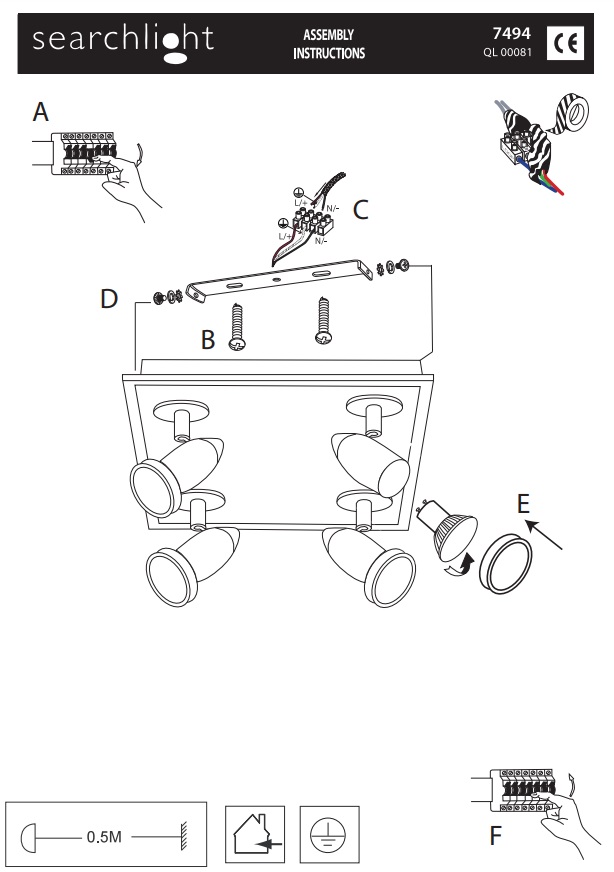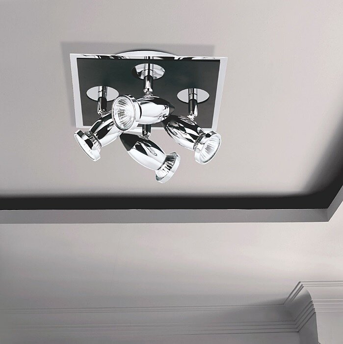 kompatibilný závit (pätica) GU10Svietidlo radu Comet je vyrobené z chrómu vo farbe matnej čiernej. Toto stropné bodové svietidlo má 4 zdroje a hodí sa do moderných interiérov. Výrobcom tohto svietidla je anglická spoločnosť Searchlight.