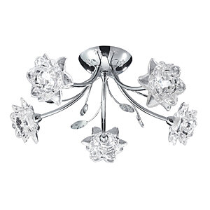 kompatibilný závit (pätica) G9Moderné stropné svietidlo sa môže pýšiť nádhernými sklenenými kvetmi miesto tienidiel. Toto romantické svietidlo si zamilujete na prvý pohľad, je moderný, jednoduché a krásne. Svietidlo je vyrobené z chrómu a skla, výrobcom je anglická výrobná spoločnosť Searchlight.