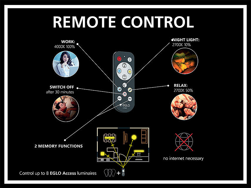 Stropné LED svietidlo z radu Zubieta-A vybavené LED modulom s výkonom 24W. Svietidlo je vyrobené z ocele, lakované do čiernej farby. Difúzor je vyrobený z opálového plastu. Ku svietidlu dostanete diaľkový ovládač 33199, vďaka ktorému môžete meniť intenzitu osvetlenia a jeho chromatičnosť v rozmedzí 2700-6500K. Hodnota úrovne krytia je IP20, hmotnosť 1,22Kg.