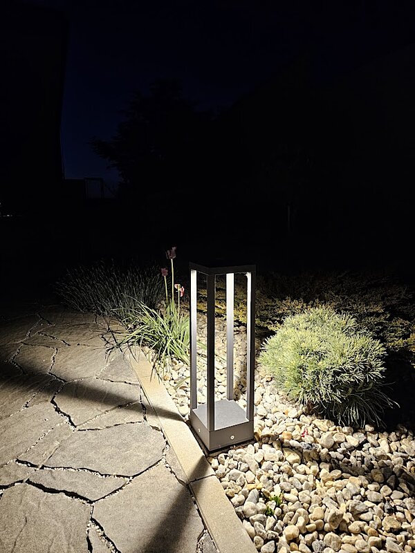 Exteriérová LED lampa vybavená COB LED diódami o celkovom výkone 15W. Konštrukcia je vyrobená z tlakovo liateho hliníka, elektrostaticky lakovaná do tmavo šedej farby. Difúzor je vyrobený z číreho skla s disperziou 47 °. Hodnota úrovne krytia IP54. Lampu nie je možné stmievať.