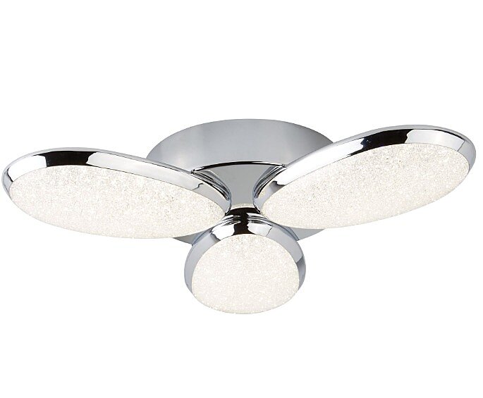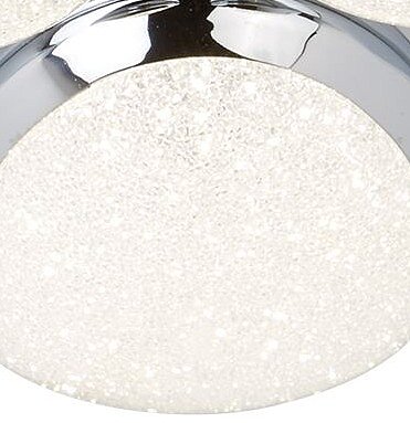 Stropné svetlo Lori od anglického výrobcu Searchlight je vyrobené z kovu a plastu. Kov vo farbe chrómu a plast je vyrobený v dizajne drveného ľadu. Nevšedný svetlo má v priemere 44cm. Tri tienidlá svieti 24W vo farbe dennej bielej. Kombinujte s osvetlením v zhodnej sérii Lori.