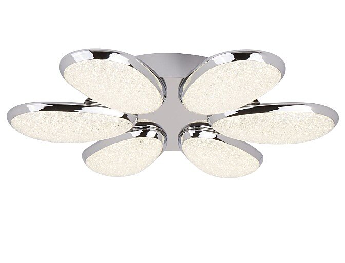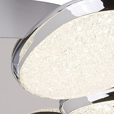 Stropné svetlo Lori od anglického výrobcu Searchlight je vyrobené z kovu a plastu. Kov vo farbe chrómu a plast je vyrobený v dizajne drveného ľadu. Nevšedný svetlo má v priemere 52cm. Šesť tienidiel svieti 48W vo farbe dennej bielej. Kombinujte s osvetlením v zhodnej sérii Lori.
