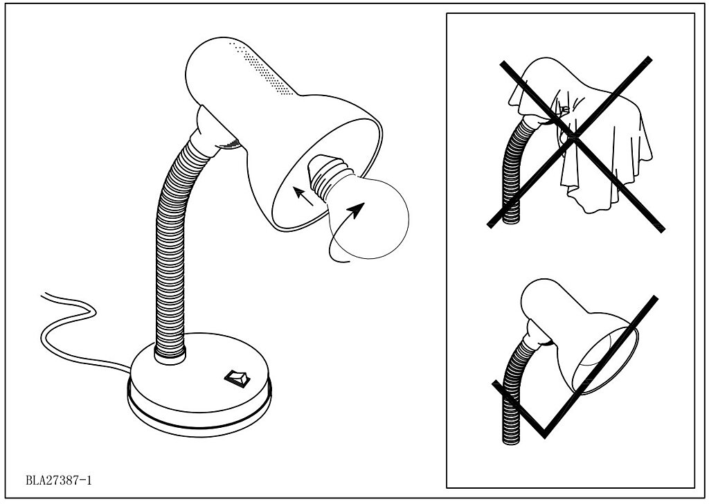 kompatibilný závit (pätica) E27Interiérová stolná lampička od EGLO, konkrétne ide o produkt s možnosťou použitia ako samostatného svietidlá alebo použitím v rade svietidiel rovnakej série s názvom: BASIC. Svietidlo možno osadiť zdrojom s päticou E27. Maximálny príkon svietidla je deklarovaný výrobcom na celkových 1x40W. Spínač na svetle, možný ohyb.