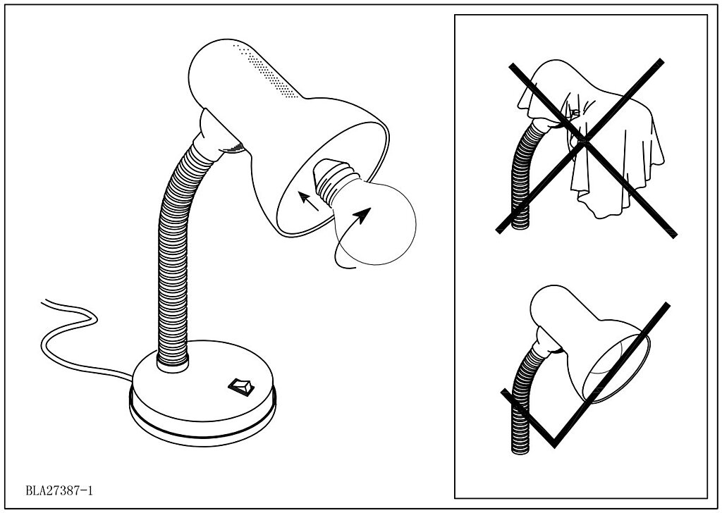 kompatibilný závit (pätica) E27Interiérová stolná lampička od EGLO, konkrétne ide o produkt s možnosťou použitia ako samostatného svietidlá alebo použitím v rade svietidiel rovnakej série s názvom: BASIC. Svietidlo je vybavené päticou E27, kam možno umiestniť príslušný zdroj. Príkon svietidla je výrobcom uvádzaný na maximálne 1x40W.Spínač na svetle, možný ohyb.