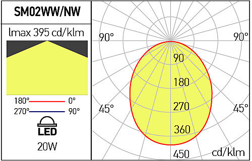Prisadené interiérové svietidlo z radu XSMOOTH vybavené SMD 2835 Epistar diódou s výkonom 20W. Puzdro je vyrobené z tlakovo liateho hliníka, elektrostaticky lakovanáno do pieskované matnej čiernej farby. Difúzor je vyrobený zo saténového akrylu. Svietidlo je vhodné pre všeobecné vnútorné osvetlenie, dekoratívne osvetlenie. Hodnota CRI je 80, váha 2,1 kg.