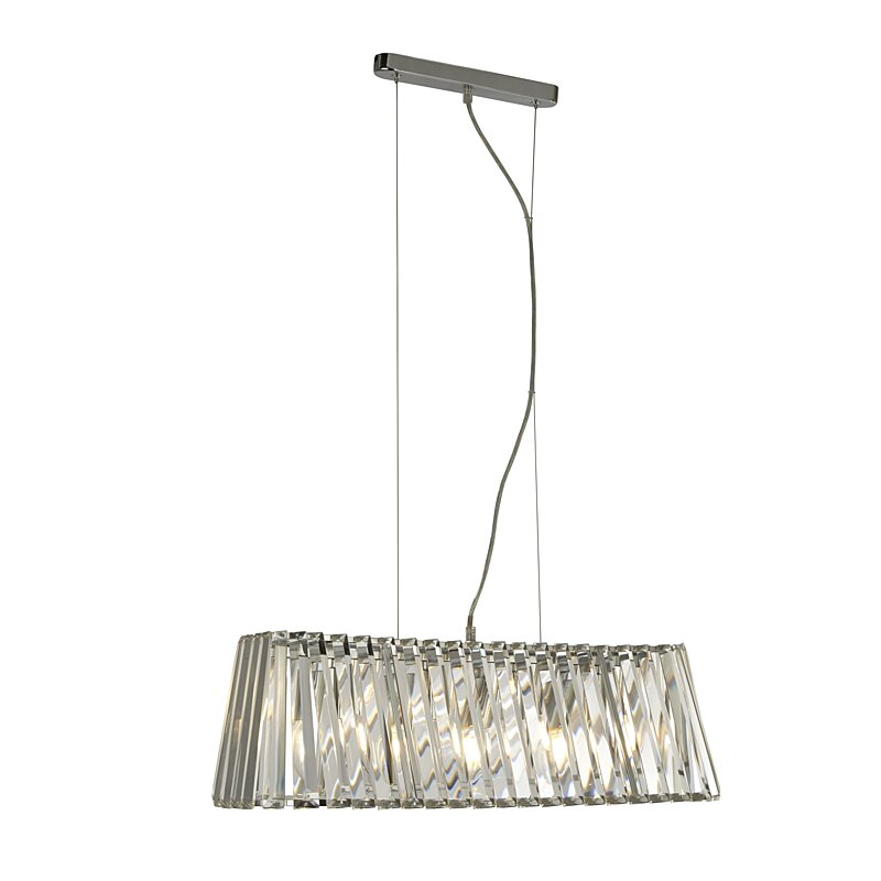 Závesné svietidlo z radu Tiara vybavené štyrmi päticami E14 s maximálnym výkonom 40W. Svetelný zdroj nie je súčasťou balenia. Svietidlo je vyrobené z kovu, lakované do chrómové farby s čírymi krištáľmi. Dĺžku závesu možno ľubovoľne skrátiť. Hodnota úrovne krytia je IP20, hmotnosť svietidlá 4,95kg.