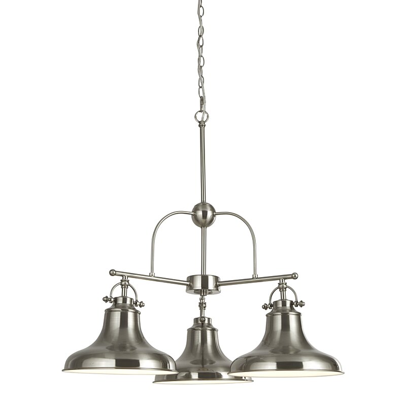 Závesné svietidlo z radu Dallas vybavené tromi päticami E27 s maximálnym výkonom 60W. Svetelný zdroj nie je súčasťou balenia. Svietidlo je vyrobené z kovu, lakované do saténovo striebornej farby zvonku a lesklé biele vnútri. Dĺžku závesu možno ľubovoľne skrátiť. Hodnota úrovne krytia je IP20, hmotnosť svietidlá 2,56kg.