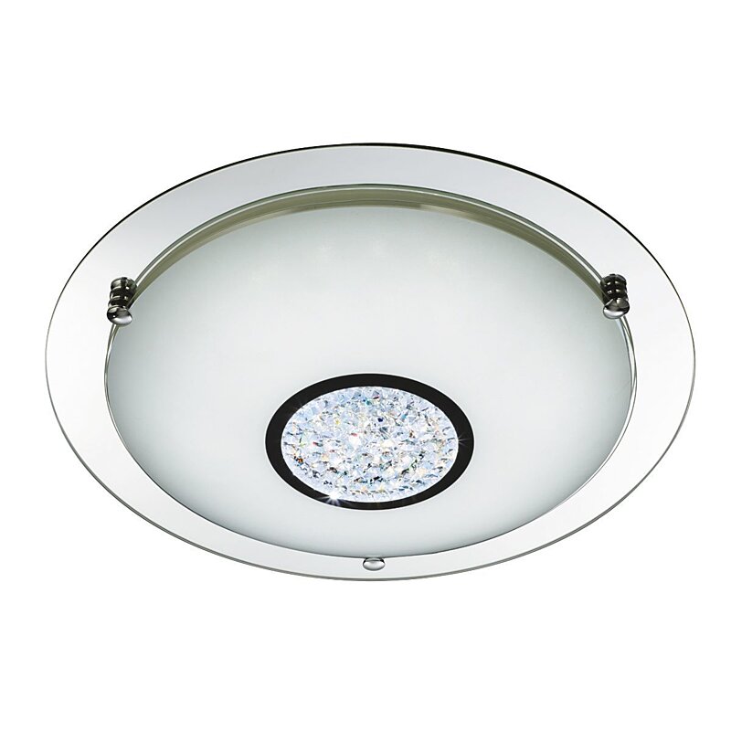 Stropné LED svietidlo z radu Bathroom vybavené LED modulom s výkonom 12W. Svietidlo je vyrobené z kovu, lakované do chrómové farby so zrkadlom na konštrukciu. Difúzor je vyrobený z opálového skla, uprostred sú kryštálikmi vnútri čierneho kruhu. Hodnota úrovne krytia je IP44, hmotnosť svietidlá 1,55kg.
