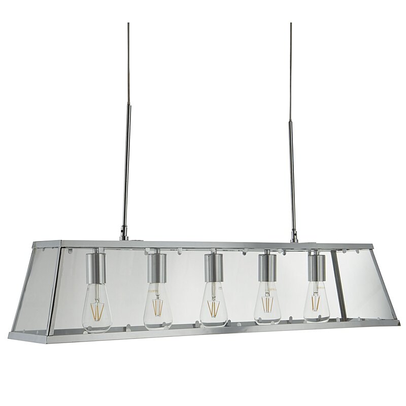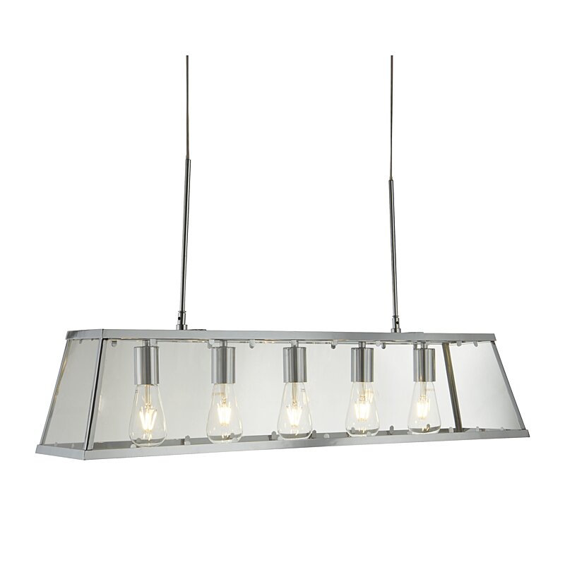 Závesné svietidlo z radu Voyager vybavené piatimi päticami E27 s maximálnym výkonom 60W. Svietidlo je vyrobené z kovu, lakované do chrómové farby. Difúzor je vyrobený z číreho skla. Dĺžku závesu je možné ľubovoľne skrátiť. Hodnota úrovne krytia je IP20, hmotnosť svietidlá 6,2kg.