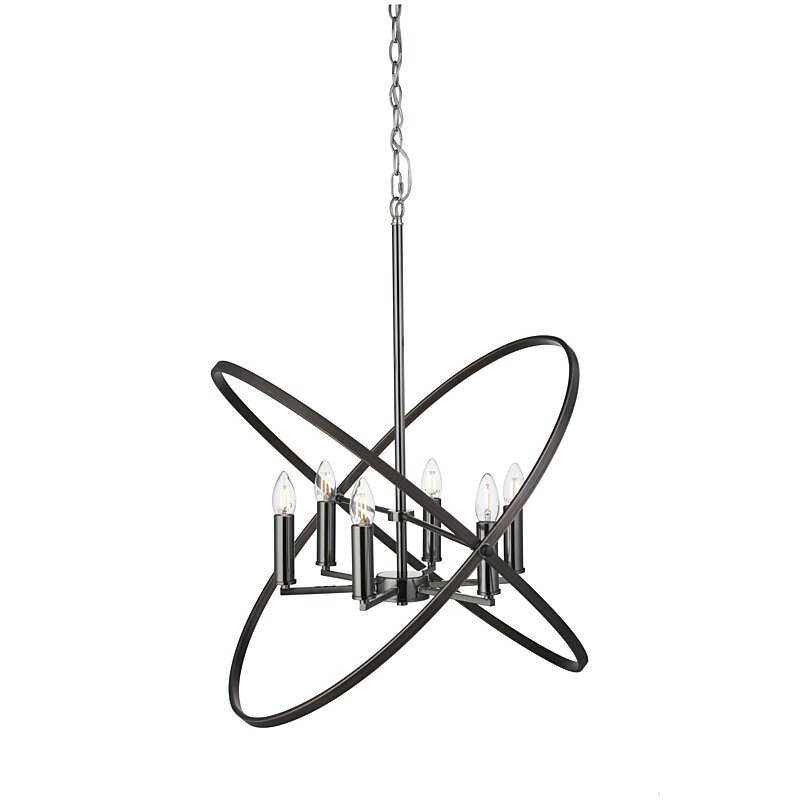 Závesné svietidlo z radu Hoople, ku ktorému sú potreba dokúpiť šesť žiaroviek s päticou E14 s maximálnym výkonom 60W. Svietidlo je vyrobené z kovu, lakované do cínové a čiernej farby. Okrasné oblúky v čiernej farbe sú pohyblivé pre vytvorenie vlastného tvaru. Dĺžku závesu je možné ľubovoľne skrátiť. Hodnota úrovne krytia je IP20, hmotnosť svietidlá 3,43kg.