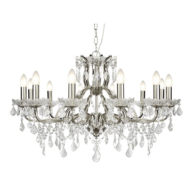 Závesné svietidlo z radu Paris, ku ktorému je potreba dokúpiť dvanásť žiaroviek s päticou E14 s maximálnym výkonom 40W. Svietidlo je vyrobené z kovu, lakované do saténovo striebornej farby. Ozdobné závesy sú vyrobené z kryštálikmi. Dĺžku závesu je možné ľubovoľne skrátiť. Hodnota úrovne krytia je IP20, hmotnosť svietidlá 12,6kg.
