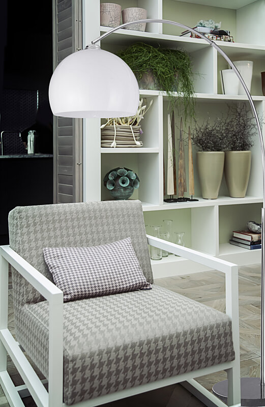 kompatibilný závit (pätica) E27Stojaca lampa radu Arc Floor Vás zaujme svojím telom aj šírkou, ktorá meria 169 cm. Svietidlo je vyrobené z kvalitného chrómu, čierneho mramoru a plastu.