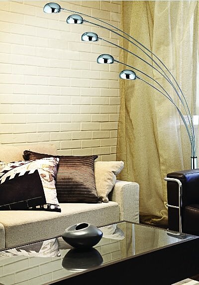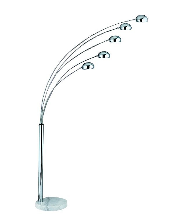 Lampa je vyrobená z kvalitného kovu v chrómovom prevedení. Podstavec má vzhľad mramoru. Táto stojaca lampa má 5 kopulových tienidiel, ktoré sú určené pre LED žiarovky s päticou E14, limitovaní ste iba príkonom 5x 7W. Je inšpirovaná moderným talianskym dizajnom.