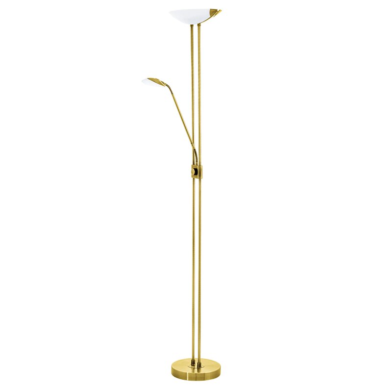 Stmievateľná stojaca lampa z radu BAYA LED sa vyrába z ocele, skla a plastu v mosadznom prevedení. Lampa je vysoká 1,8m.