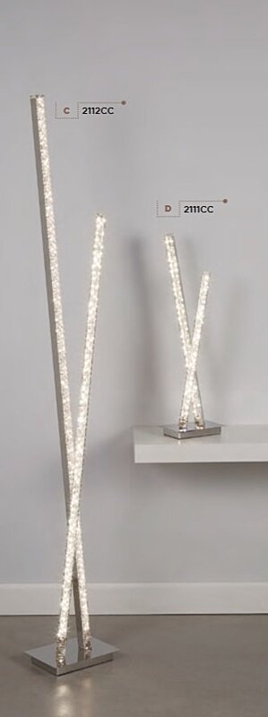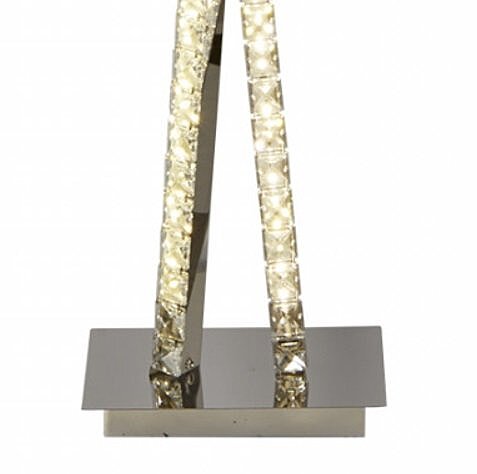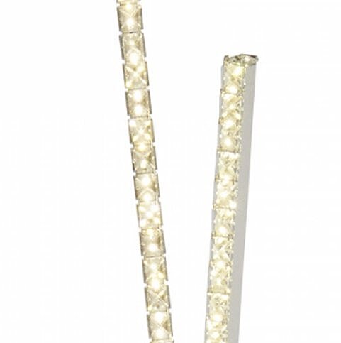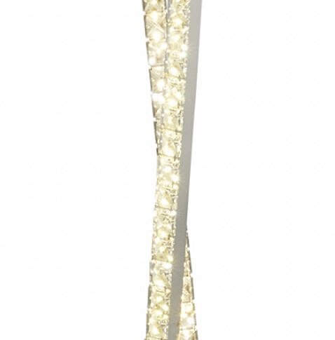Táto krásna lampa v chrómovom prevedení sa skladá z dvoch svetelných častí, tie sa v stredu pretínajú. Lampa je vybavená integrovanou LEDkou, ktorá svieti cez krištáľmi a vytvára tak ohromujúce svetelné efekty. Svieti denná bielou farbou o sile 2400lumenů. LED diódy využívajú až o 85% menej energie a vydržia až 20-krát dlhšiu dobu než klasické žiarovky. Hodí sa do každého moderného izby.