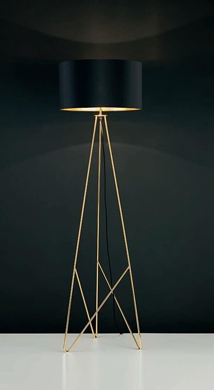 Stojaca lampa radu Camporale sa zapína aj vypína nožným spínačom. Farba tienidla je tmavo čierna, rovnako ako u produktov z rovnakej série.