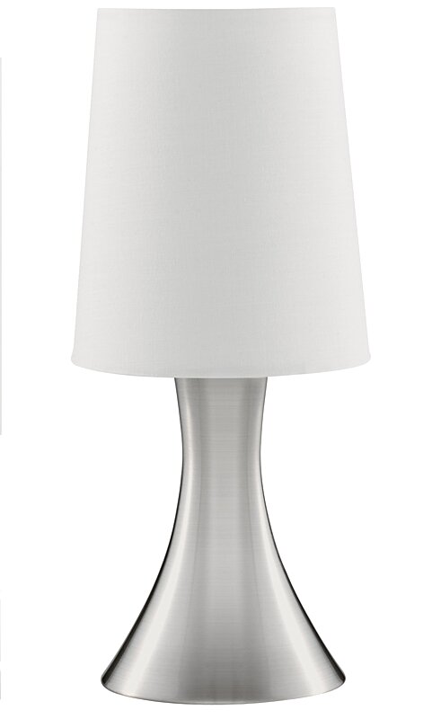 kompatibilný závit (pätica) E14Izbové lampičky nevšedného dizajnu v kovovom prevedení sa hodí do každého interiérov. Matný design zaisťuje praktickosť. Praktický dotykový spínač doplna modernej lampičku. Šírka látkového tienidla je 12cm a výška 15cm.