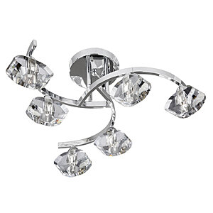 kompatibilný závit (pätica) G9Toto stropné svietidlo radu Sculptured ice je vyrobené z kvalitného chrómu a skla. Toto moderné svietidlo má 6 sklenených tienidiel a okrúhly stropné kryt, skvele sa hodí do moderných interiérov. Výrobcom tohto svietidla je anglická spoločnosť Searchlight.