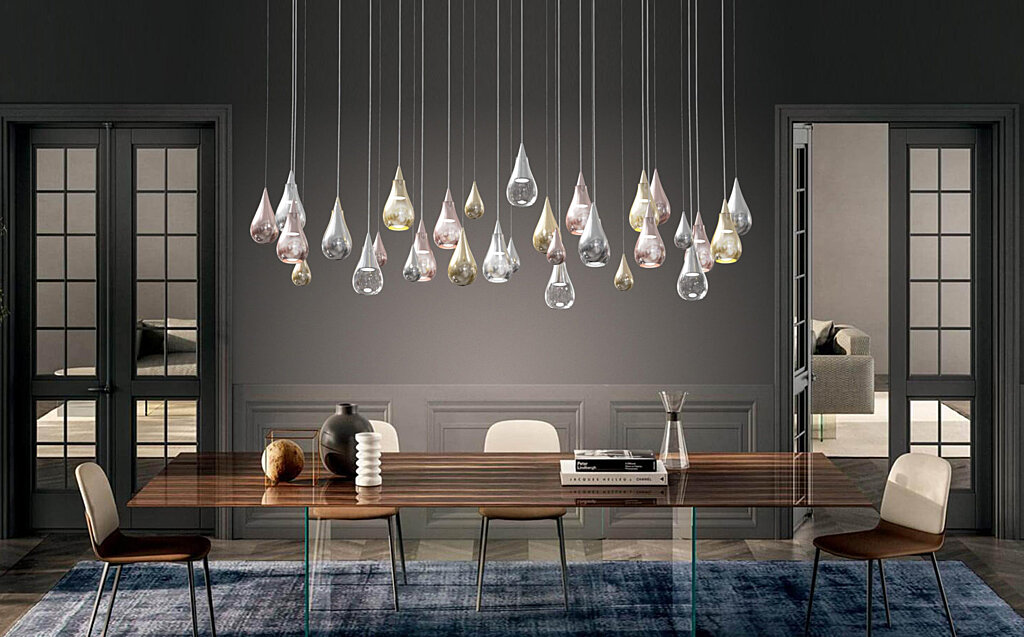 kompatibilný závit (pätica) GU10Zlaté tienidlo Sospesi od talianskeho výrobcu Sikrea je dodávané s 3,5 m dlhým závesom, ktorý je možné ľubovoľne skrátiť a za príplatok aj predĺžiť. Veľmi pekné sú inštalácie viacerých tienidiel v rôznych výškach a farbách. Montúru, podstavec na uchytenie si môžete vybrať alebo ju možno na mieru vyrobiť. Prekrásne svetlo evokuje padajúce kvapky dažďa. Buďte kreatívni, vytvorte si niečo viac ako svetlo, ktoré Vás nadchne.