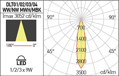 Zápustné interiérové LED svietidlo z radu XDRILL vybavené tromi SMD 5050 BRIDGELUX diódami o výkone 3x9W. Konštrukcia je vyrobená z hliníka, elektrostaticky lakovanána do matnej čiernej farby. Reflektor je vyrobený z polykarbonátu so striebrom, difúzor z priehľadného polykarbonátu s hodnotou UGR <10. S reflektorom je možné otáčať o 355 ° a naklápať do strán pod uhlom 65 °. Dekoratívne krúžok je vyrobený z hliníka. Montáž sa vykonáva vyrezaním otvoru, prehĺbením sadrokartónu podľa konštrukcie svietidla, priskrutkovaním dvoma vybranými otvormi a následnom zasádrování konštrukcie. Svietidlo je vhodné pre všeobecné alebo akcentačné osvetlenie komerčných priestorov, múzeí a iných výstavných priestorov, obytných a rekreačných priestorov. Domáce osvetlenie. Hodnota CRI je 90, váha 1,05kg.