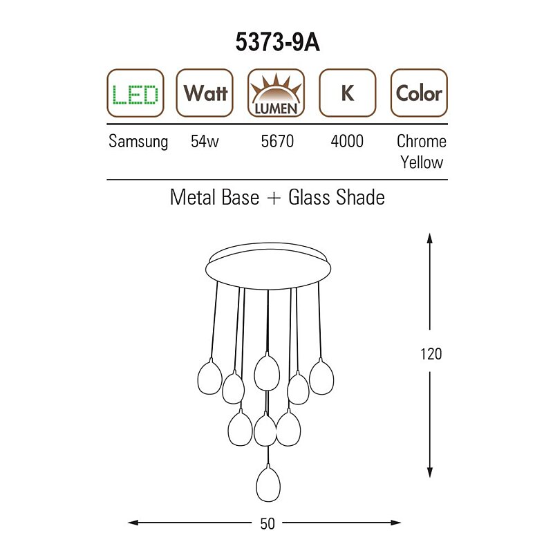 Zaujímavé svietidlo od značky Ozcan 5373-9A vo farbe chrome. Vajíčková rad s ozančením 5373 ponúka svietidlá s LED technológiou od Samsungu.
