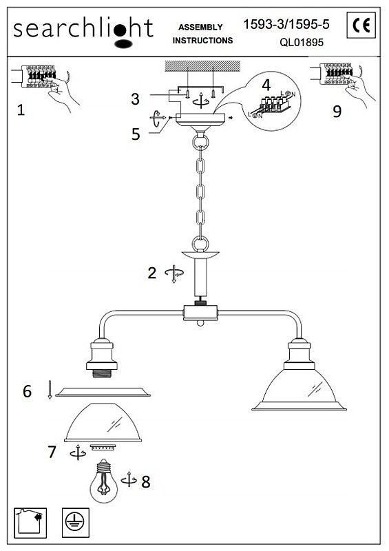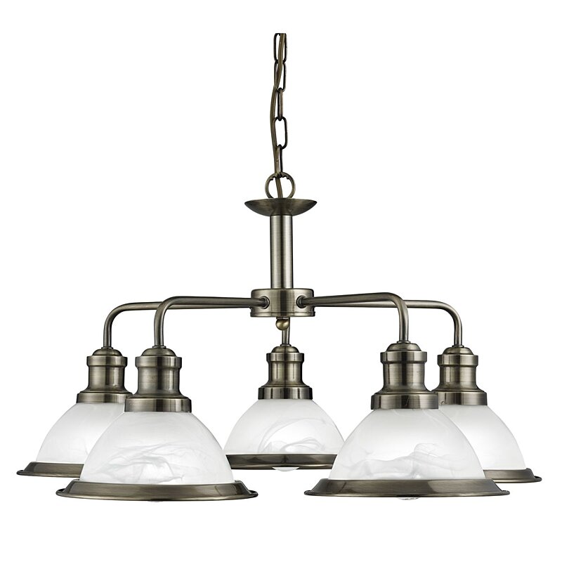 kompatibilný závit (pätica) E27Závesné svetlo Bistro je vyrobené anglickým výrobcom Searchlight. Použitými materiálmi sú kov a sklo. Sklo má opálovou farbu a je zdobné, nie je jednoliate. Kov je vo farbe atickej.