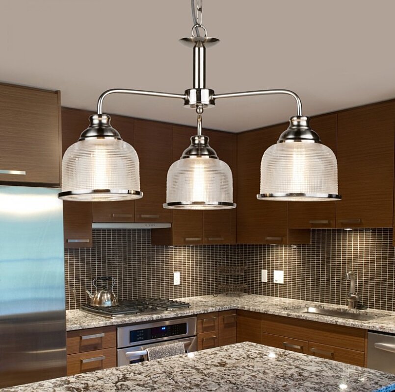 Konštrukcia svietidla je vyrobená z kovu v saténovo striebornej farbe. Tú dopĺňajú tri sklenené tienidlá.