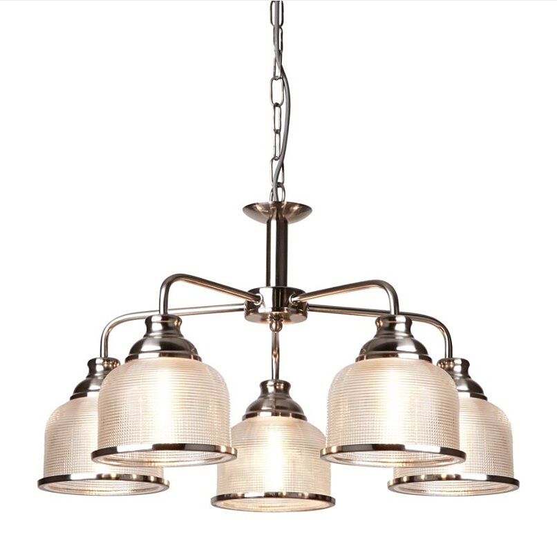 Konštrukcia svietidla je vyrobená z kovu v saténovo striebornej farbe. Tú dopĺňa 5skleněných tienidiel.