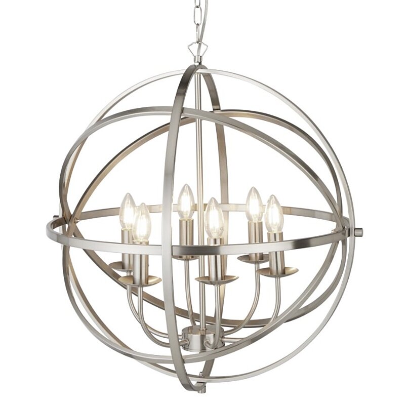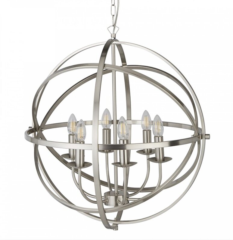 Toto svietidlo je určené pre 6 LED žiaroviek s päticou E14, limitovaní ste iba príkonom 6x7W. Skvelou voľbou do tohto svietidla sú vintage žiarovky , ktoré dodajú tomuto svietidlu ozajstné čaro. Svietidlo je vyrobené z kovu v saténovo striebornom prevedení. Tienidlo má výšku 65cm, celková výška sa závesom meria 210cm.