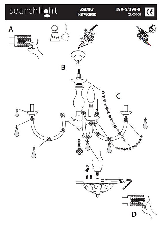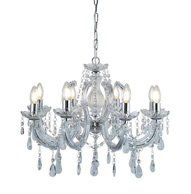 kompatibilný závit (pätica) E14Závesné svietidlo od anglického výrobcu Searchlight z radu MARIE THERESE .Svítidlo sa vyrába v kombinácii materiálov chróm a krištáľové sklo .Svítidlo využíva päticu E14 s príkonom 8x60W.Maximální nastaviteľná výška svietidla je 102 cm .Tento dizajnový kúsok bude krásnou ozdobou Vášho interiéru.