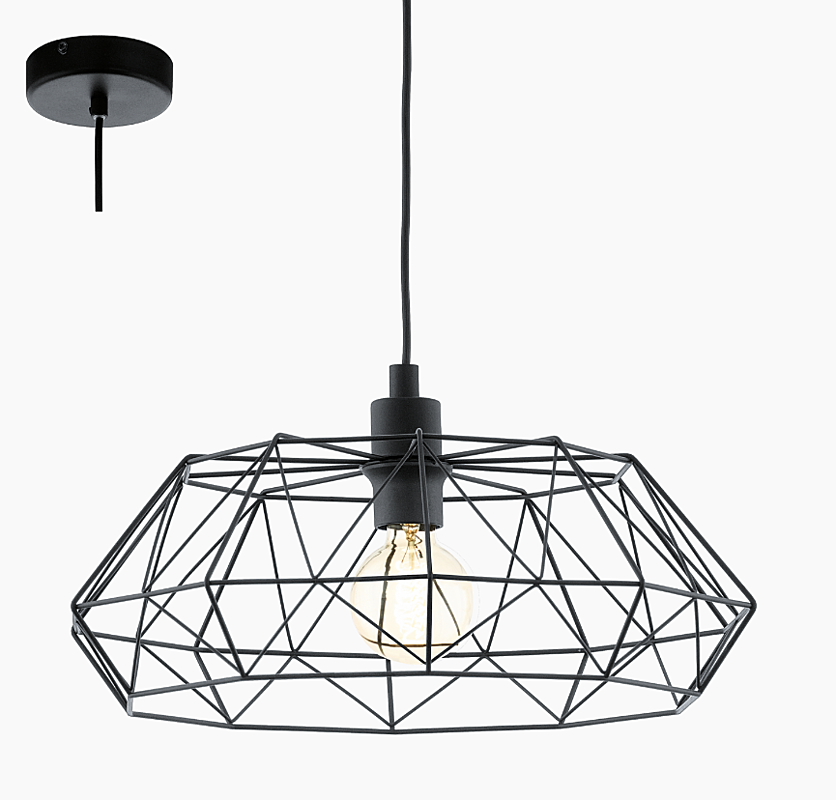 kompatibilný závit (pätica) E27Závesné svietidlo z radu CARLTON 2 s drôteným tienidlom v čiernej farbe.